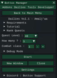 All Dailies volumes use Bottox Manager and Bottox Mesh. Bottox Manager is a free addon available on Minionapp store. Bottox Mesh files must be dropped into your Navigation folder: MINIONAPP\Bots\FFXIVMinion64\Navigation
