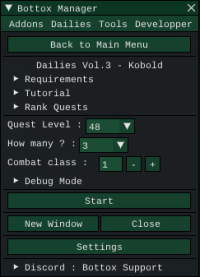 All Dailies volumes use Bottox Manager and Bottox Mesh. Bottox Manager is a free addon available on Minionapp store. Bottox Mesh files must be dropped into your Navigation folder: MINIONAPP\Bots\FFXIVMinion64\Navigation