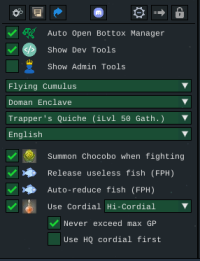 Click on the ingame mmominion button, select FFXIV tab then click on the Bottox button.