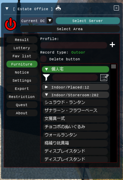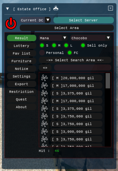 - Choose the server and area you want to gather info from