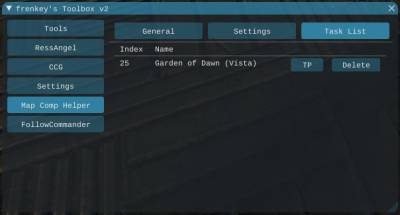 [ TP ] lets you TP to the tasks map if you are not on the tasks map and the tasks location if you are already on the tasks location[ Delete ] deletes the current task from the list