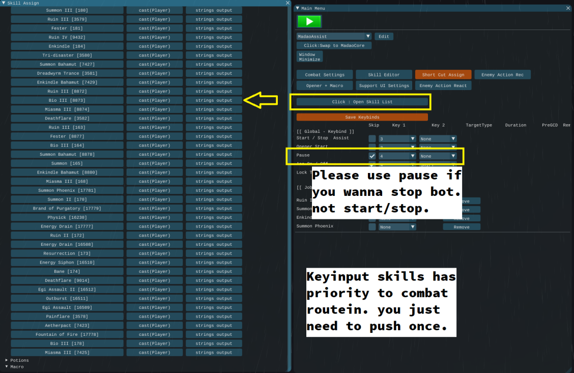 • User side Macro and premade macro for skills.