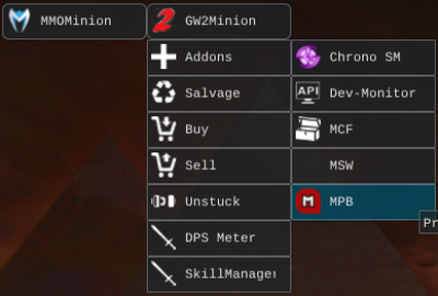 MPB_Public:GetRootPath() --returns the module folder MPB_Public:IsRunning() --returns if the profile is disabled or running MPB_Public:RefreshList() MPB_Public:ToggleRun() --disables/enables the profile MPB_Public:EnableModule() MPB_Public:DisableModule() MPB_Public:TriggerReset() --resets the profile context MPB_Public:ToggleTargetLock() --locks/unlocks the target MPB_Public:ResetCache() --Resets profile variables and other state MPB_Public:GetBlockSkills(projectiles) --projectiles of type boolean, returns a list of skill IDs
