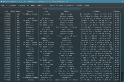 | Find | As already explained, allows you to search for specific locations. The ENpc column is searched for the criteria you specify. This column is typically the name of the character NPC, but many of the entries are nameless. |