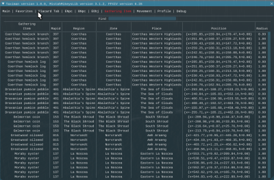 This tab provides in-game location data generally about quest gathering items. The control for this tab are: