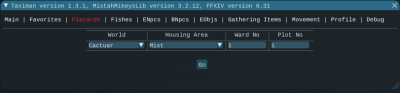 This tab allows you to travel to any placard in any housing area in Eorzea, even if they are in different worlds. You select where you want to go by using the drop-down controls and the text entry fields.