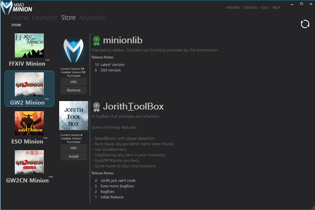 商城提供所有的Minion插件. 这些商城是使用我们的标准APIStandard Lua API,并且与我们辅助相兼容!